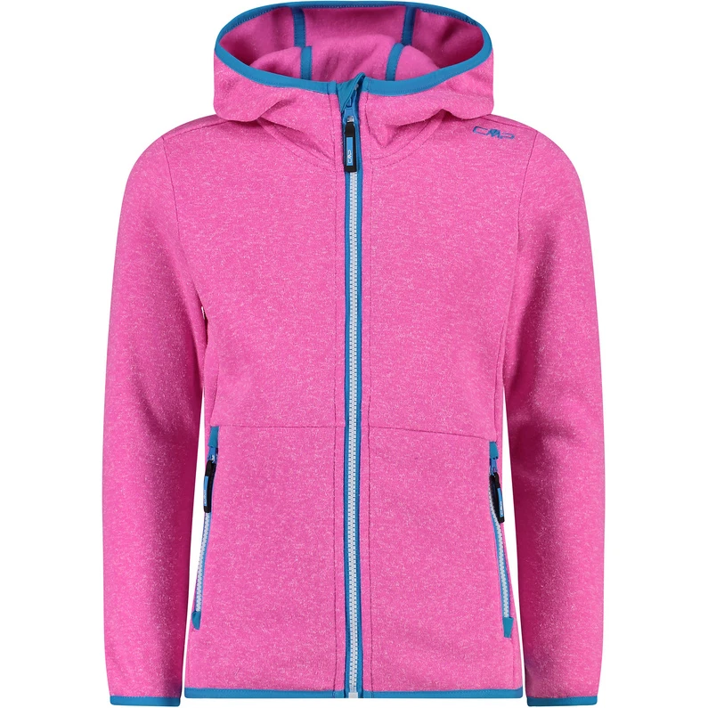 Diese Hoodie Jacke von CMP bildet eine super Grundlage für die kühlen Herbst-Wintertage. Mädels können sie bei gemütlichen Wanderungen ebenso gut tragen, wie im Alltag und dank des schönen Stricklooks mit frischen Farben passt sie optisch überall.Das angesprochene Strickfleece sorgt natürlich nicht nur für einen feinen Look, es hat auch eine weiche Haptik und schenkt die nötige Wärme. Dank beigemischter Viskose liegt die Jacke noch angenehmer auf der Haut.Zusammen mit dem bequemen Schnitt trägt sich die Fleecejacke klasse, egal ob sie eigenständig oder als warmen Midlayer getragen wird.