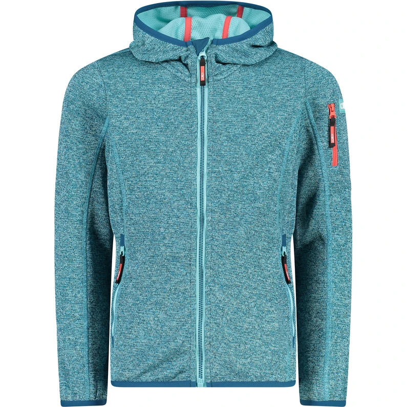 Die Knitted Hoodie Jacke von CMP hat mit seinem gestrickten Fleece und der Melange-Optik einen Stil, der sich überall blicken lassen kann. Dazu gibt es die Kapuzenjacke in vielen verschiedenen Farben, da ist für alle Mädels etwas dabei.Auch der Tragekomfort des warmen Midlayers (250 gm²) macht Spaß. Das Material ist nicht nur angenehm weich, durch eine Meshstrukur im Inneren wird Feuchtigkeit noch effizienter nach außen abgeleitet. Ideal, wenn es beim Wandern doch mal schwitziger zu geht.