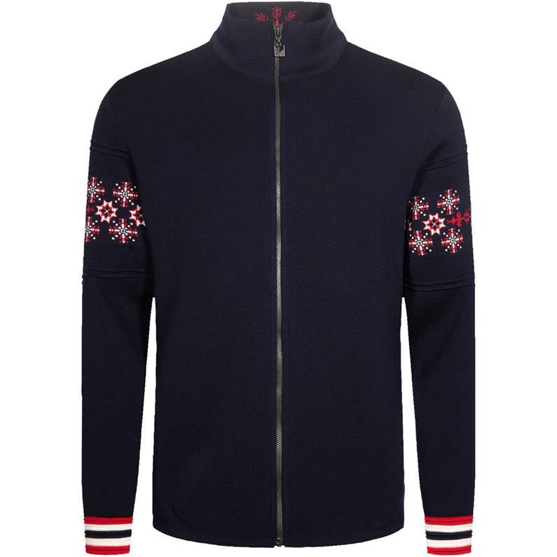 Die Monte Cristallo Jacke von Dale of Norway ist die offizielle Strickjacke für das norwegische Herren-Alpinskiteam für die WM in Cortina d’Ampezzo 2021. Sie ist aus angenehm weicher Merinowolle hergestellt und fällt besonders durch ihre ausgefallene Rückseite auf.Diese zeigt die Silhouett des Monte Cristallo, der Bergkette im Nordosten von Cortina. Außerdem sind die Arme mit Schneeflocken in den norwegischen Nationalfarben gestaltet. Hiermit werden Erinnerungen an vergangene Meisterschaften in dem italienischen Skiort wach.br>