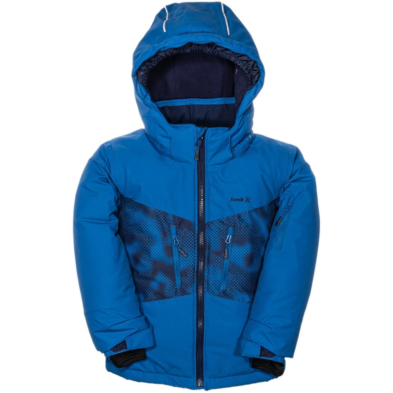 Mit der Jared Jacke von Kamik trotzen aufgeweckte Jungs jedem Wetter – schließlich gibt es auch an tristen Wintertagen draußen viel zu entdecken. Dabei hält die dicke Winterjacke immer trocken und warm.Dank ihrer zuverlässigen Membran ist die robuste Jacke absolut wind- sowie wasserdicht, auch die Nähte wurden verschweißt und der abweisende Front-Reißverschluss hält Nässe ebenfalls draußen. Gleichzeitig sorgt eine Kunstfaserisolierung für die extra Portion Wärme und auch die Atmungsaktivität kommt nicht zu kurz.Eine umfangreiche Ausstattung macht die Jared Jacke komplett. Der feste Schneefang, die verstellbaren Armabschlüsse und eine abnehmbare Kapuze dürfen bei launischem Winterwetter nicht fehlen. Reflektierende Details, ein eingenähtes Namensetikett und die um bis zu 4cm verlängerbaren Ärmel freuen insbesondere die Eltern.