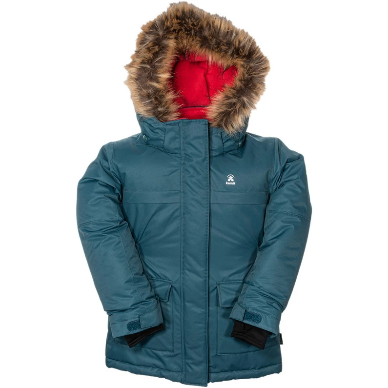 In der Katy Jacke von Kamik können aktive Mädels die kühle Winterzeit draußen genießen. Die kuschelige Jacke hält mollig warm und bietet einen umfassenden Schutz vor Wind und Wetter. Eine wasserdichte Membran sorgt dafür, dass Nässe und Zugluft zuverlässig draußen bleiben. Sie ist gleichzeitig aber auch angenehm atmungsaktiv, sodass die Kids nach Herzenslust toben können ohne zu sehr ins Schwitzen zu kommen. Eine pflegeleichte Kunstfaserfüllung und zusätzliche Polarfleece-Einsätze an Rücken, Kragen und in der Kapuze halten den zarten Kinderkörper warm.Sowohl die Kapuze als auch deren hübscher Kunstfellkragen lassen sich einfach abnehmen – so kann der Nachwuchs die Optik seiner Winterjacke nach Lust und Laune verändern. Ein fester Schneefang und verstellbare Armabschlüsse inklusive elastischer Stulpen dichten die Jacke zusätzlich ab. Bis zur Größe 128 lassen sich die Ärmel um bis zu 4 cm verlängern, damit die Katy Jacke länger als nur einen Winter passt. Reflektierende Elemente, ein innenliegendes Namensetikett und große, praktische Taschen dürfen bei einer Kamik-Jacke natürlich nie fehlen.