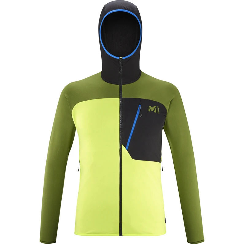 Kalt kann es in den Bergen zu jeder Jahreszeit werden, weshalb du bei allen Touren – von der sportlichen Wanderung bis hin zu alpinen Klettereien – gerne die Seneca Hoodie Jacke von Millet dabei hast.Dank Polartec® Techno Grid Material wärmt die Fleecejacke hervorragend und gefällt dabei mit dem großzügigen Vier-Wege-Stretch. Zusammen mit dem sportliche Schnitt mit Raglanärmeln kannst du dich frei bewegen, ohne dass deine Bewegungsfreiheit eingeengt wird.br>Auf der Innenseite ist das recycelte Material der Seneca Hoodie Jacke in einem Gitternetz strukturiert, wodurch Wärme gut gespeichert, überschüssige Hitze und Feuchtigkeit aber schnell abtransportiert werden kann. Außen dagegen ist es sehr strapazierfähig, um sich unterm Kletter- oder Rucksackgurt nicht aufzuscheuern.br>