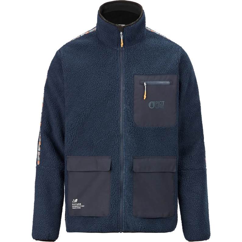 Eine richtig schön warme Jacke mit einem klassischen, trotzdem jungen Look gefällig? Dann greif gerne bei der Quilchena Jacke von Picture zu. Ob als eigenständige Jacke in der Übergangszeit oder als warmer Midlayer für den Winter ist ein absoluter Gewinn.Natürlich bleibt Picture auch hier seiner nachhaltigen Linie treu und setzt zu über der Hälfte auf zertifiziertes Recyclingmaterial. Das gebondete Sherpa Fleece sorgt dabei für richtig viel Wärme und hat eine angenehm weiche Haptik.In den aufgesetzten, wasserabweisenden Taschen bekommst du deinen Kleinkram schnell greifbar unter und der hohe Kragen der Quilchena Jacke schenkt dir zusätzlichen Komfort.
