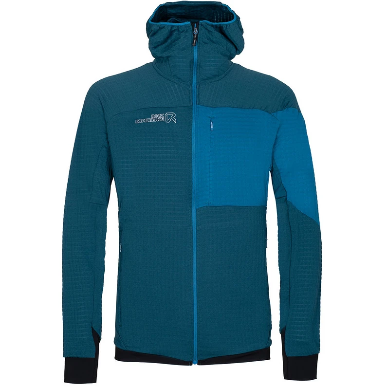 Mit der Reptile Hoodie Fleece Jacke von Rock Experience bist du auch für spontane Kraxeleien auf der Bergtour bestens gerüstet. Ihr Materialmix hält deinen Oberkörper dank viel Stretch und einer groben Waffelstruktur im Inneren wohl temperiert und bietet extra viel Bewegungsfreiheit. Die Funktionsfasern leiten Feuchtigkeit zudem besonders rasch vom Körper ab und punkten mit einem hohen Wärmerückhalt – genau das Richtige bei launischem Bergwetter!Durch ihre glatte Außenseite eignet sich die Reptile Hoodie Fleece Jacke perfekt als mittlere Schicht unter einer Hardshelljacke, Raglanärmel sorgen dafür das auch an den Schultern nichts scheuert oder drückt. Mit ihren elastischen Saumabschlüssen sitzt die Fleecejacke angenehm eng am Körper und verrutscht selbst bei ausladenden Bewegungen nicht. Eine ebenfalls elastisch eingefasste Kapuze und praktische Reißverschlusstaschen runden den Midlayer perfekt ab.